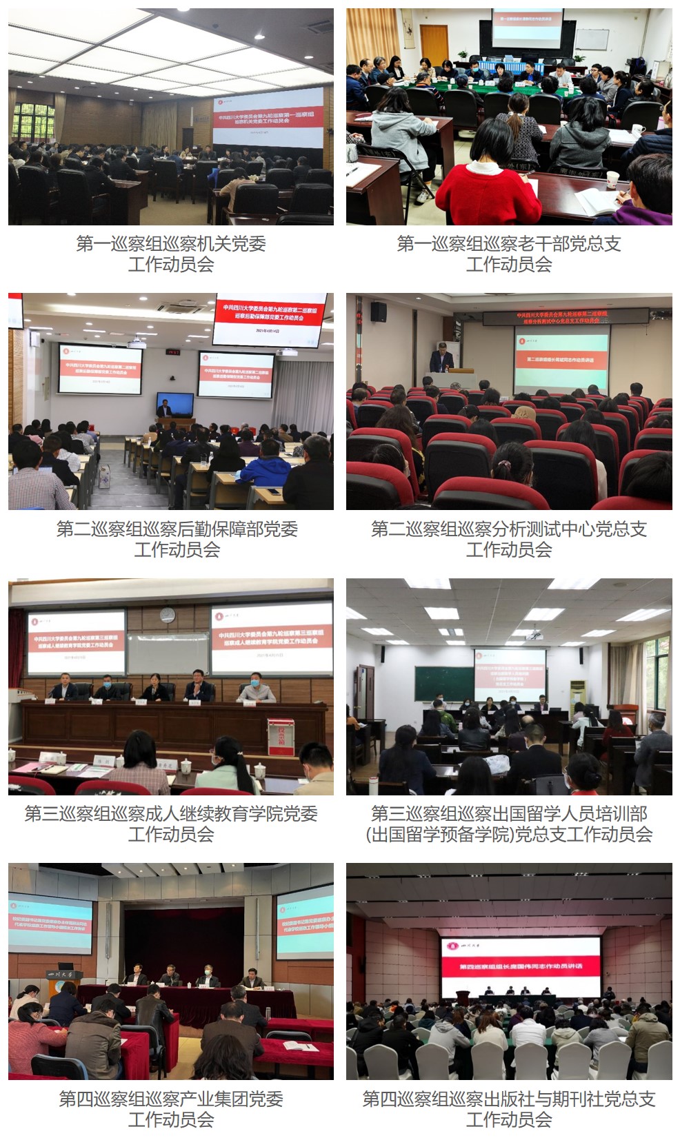 经学校党委批准,本轮巡察对机关党委、老干部党总支、后勤保障部党委、分析测试中心党总支、出版社与期刊社党总支、成人继续教育学院党委、出国留学人员培训部(出国留学预备学院)党总支、产业集团党委等8个党组织开展常规巡察,并在巡察机关党委时对其所辖的未接受巡察的机关职能部门和业务实体单位党支部全部开展延伸巡察。近日,各巡察组分别召开巡察工作动员会,各巡察组组长作动员讲话并通报有关工作安排,校巡察工作领导小组成员就被巡察单位党组织支持和配合巡察工作提出要求,各被巡察单位党组织主要负责人作表态发言。