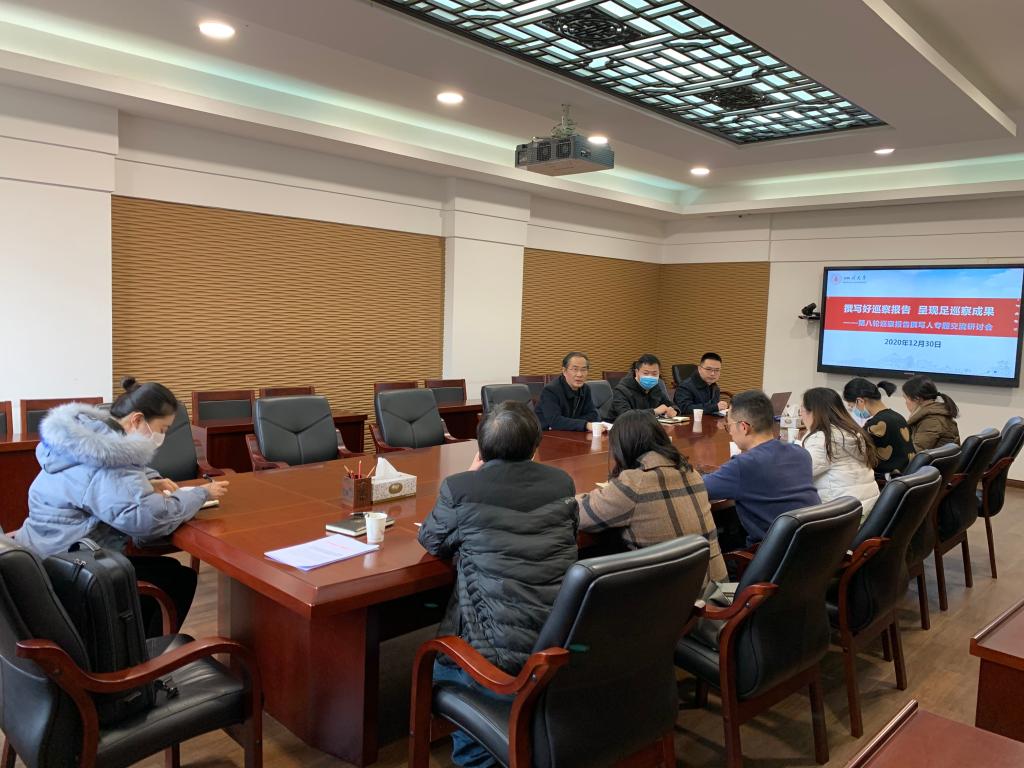 目前,学校党委第八轮巡察工作已进入撰写巡察报告阶段,为撰写高质量的巡察报告,充分体现巡察工作成果,2020年12月30日下午,校巡察办在望江校区办公楼三楼一会议室举办了第八轮巡察报告撰写人专题交流培训会。