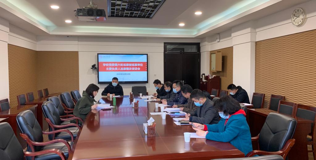 为了解巡察整改工作进度,进一步夯实主体责任,切实推动被巡察单位把巡察整改任务落实落细,12月10日上午,学校党委在望江校区办公楼三楼二会议室召开第六轮巡察被巡察单位主要负责人巡察整改集体谈话会。校党委副书记、巡察工作领导小组副组长曹萍主持会议并提出要求,第六轮巡察被巡察单位主要负责人、巡察办工作人员等参加了会议。