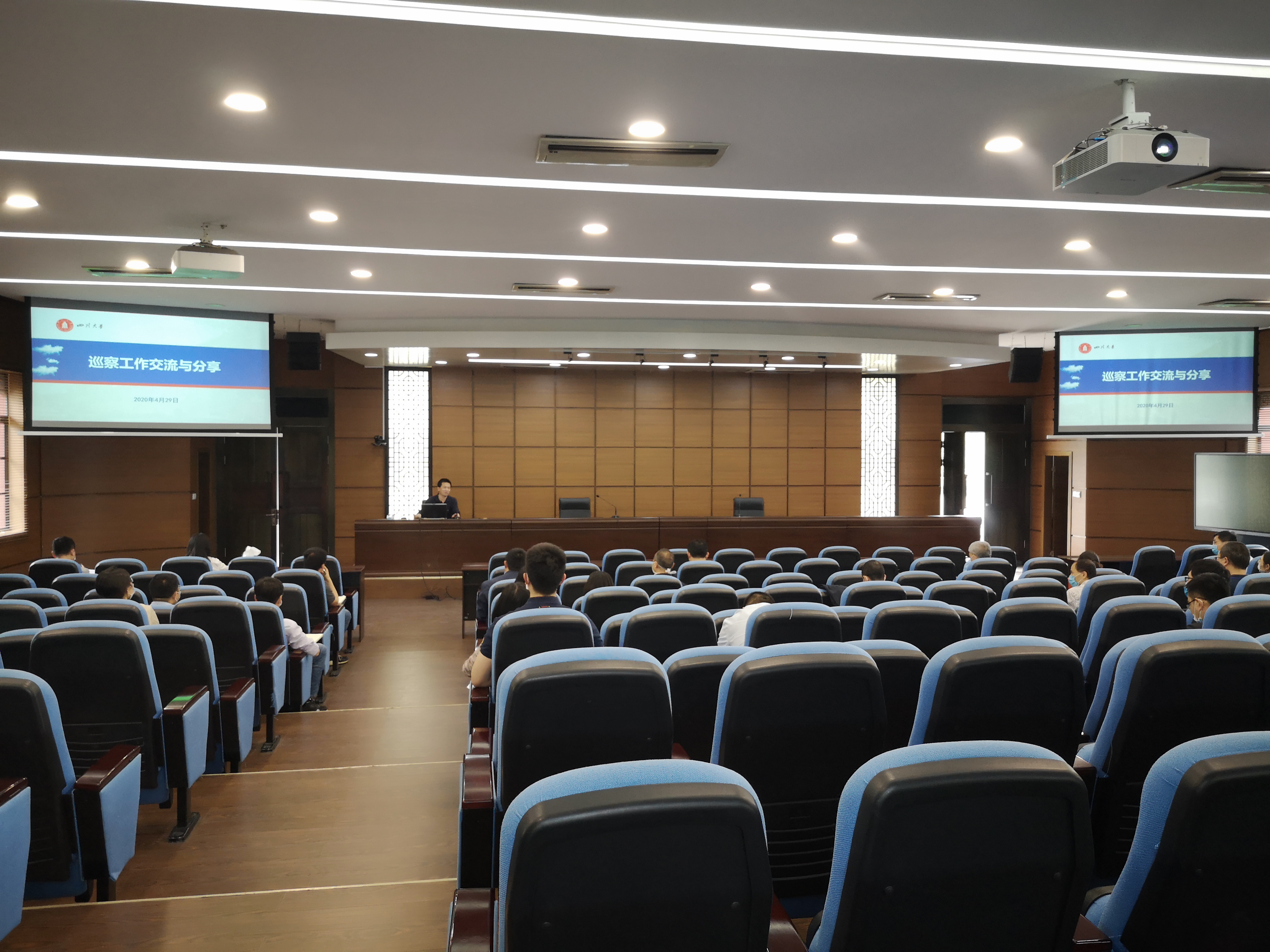 2020年4月29日下午,学校第五轮巡察业务培训会在望江校区明德楼四楼二会议室举行。校纪委副书记兼纪委办公室主任、监察处处长、巡察办副主任滕文浩作业务培训报告,学校第四轮巡察第二巡察组组长、教务处处长张红伟作经验介绍。第五轮巡察各巡察组全体成员、巡察办工作人员参加培训会。培训会由巡察办专职副主任李玉峰主持。
