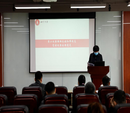 4月1日,学校党委第四轮巡察第二巡察组巡察轻工科学与工程学院党委情况反馈会在皮革楼215会议室举行。第二巡察组组长张红伟,副组长陈明惠、罗云丹向轻工科学与工程学院党政主要负责人反馈巡察情况后,张红伟同志代表巡察组进行了大会反馈。学校党委巡察办专职副主任李玉峰参加会议并对巡察整改工作提出要求。学院党委书记刘晓虎作表态发言,院长何有节主持会议。