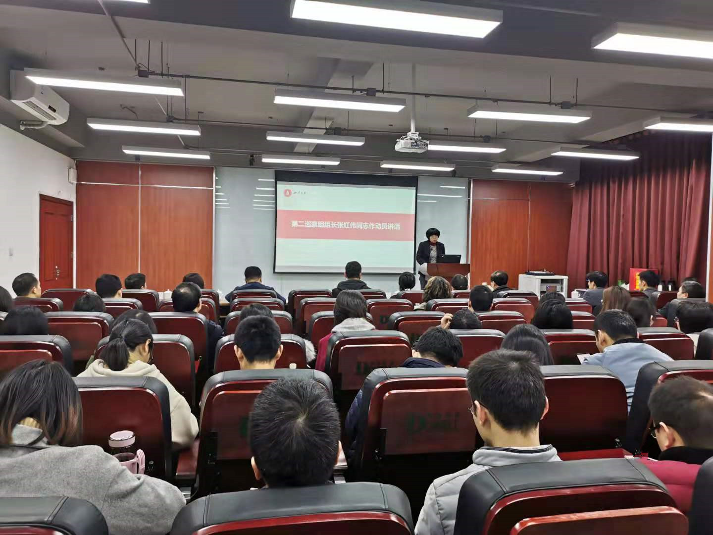 第二巡察组组长张红伟同志作动员讲话,指出,本轮巡察是在“不忘初心、牢记使命”主题教育期间,深入学习贯彻十九届四中全会精神背景下开展的,是贯彻落实党的十九大对巡视巡察工作要求,切实增强“四个意识”,做到“两个维护”,推动全面从严治党向基层延伸、向纵深发展的重要举措。具体提出三点意见:一是认真学习领会,把握精神要义,切实把思想和行动统一到中央、教育部和学校对巡察工作的决策部署上来;二是突出巡察重点,明确工作任务,坚决贯彻落实政治巡察各项要求;三是依规依纪开展巡察,加强组织协调,切实保证巡察工作扎实有序推进。会上,她还就巡察工作安排和信访渠道等情况作了说明。