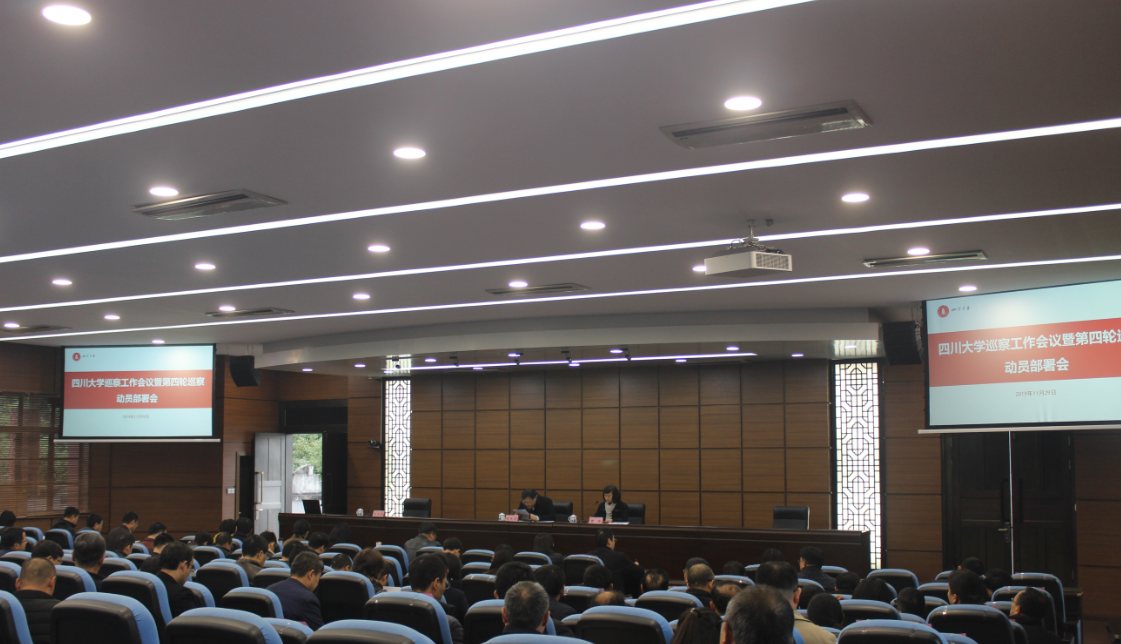 为深入学习习近平总书记关于巡视工作的重要论述和党的十九届四中全会精神,落实全国巡视工作会议和教育部党组巡视工作会议决策部署,总结学校前三轮巡察工作的经验和做法,部署今后一个时期巡察工作,对第四轮巡察工作进行动员,11月29日下午,学校在望江校区明德楼四楼二会议室召开了巡察工作会议暨第四轮巡察动员部署会。校巡察工作领导小组副组长、校党委副书记曹萍出席会议并讲话,校巡察工作领导小组副组长、校党委副书记、纪委书记陈志坚主持会议并通报学校巡察发现的典型问题。会议强调,坚守巡察初心,落实职责使命,奋力推进学校巡察工作高质量发展,为建设中国特色、川大风格的世界一流大学提供坚强政治保障。