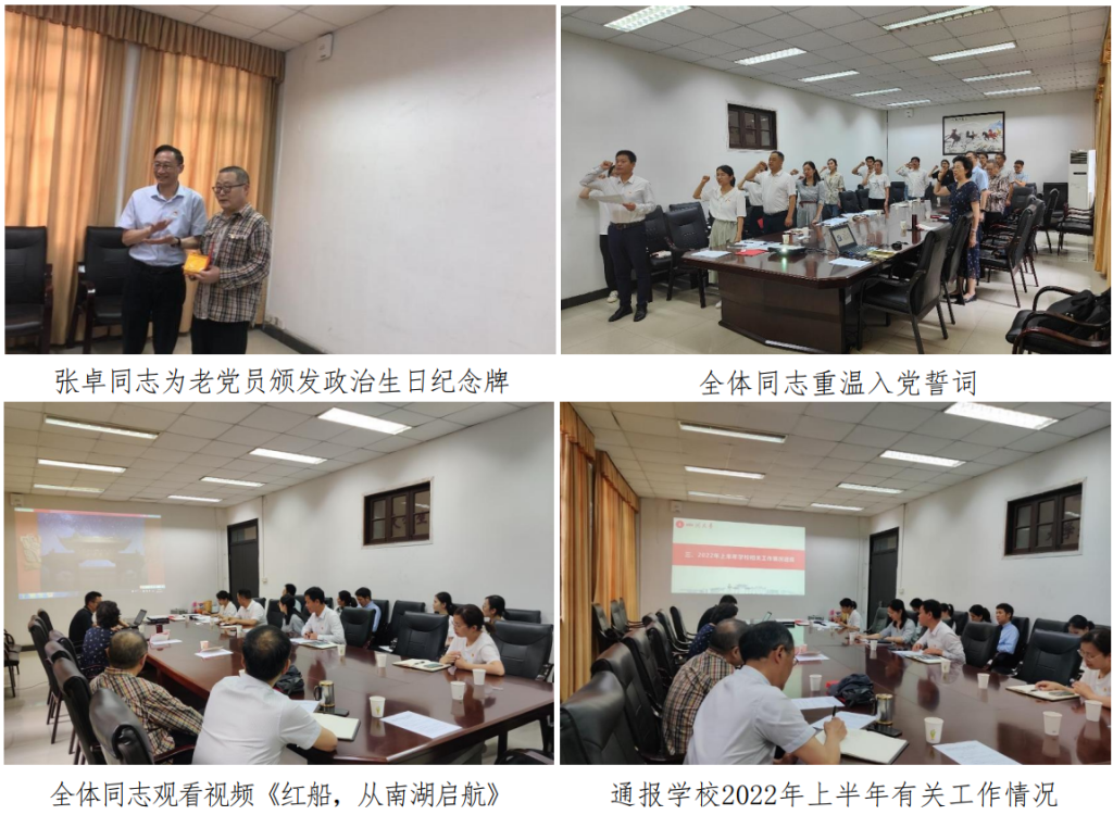 活动以短片《致为党许国的“你”》开场,两个党支部全体党员共同学习了近年来在各行各业涌现出的优秀共产党人的先进事迹。全体同志同过政治生日,活动为每位党员发放了政治生日贺卡。张卓同志为党龄50周年的老党员李宙松同志颁发了政治生日纪念牌。在李玉峰同志的领誓下,全体同志重温了入党誓词。随后,共同观看了巡视办参加学校第五届“经典守护者”中华经典美文诵读大赛的获奖作品《红船,从南湖起航》。