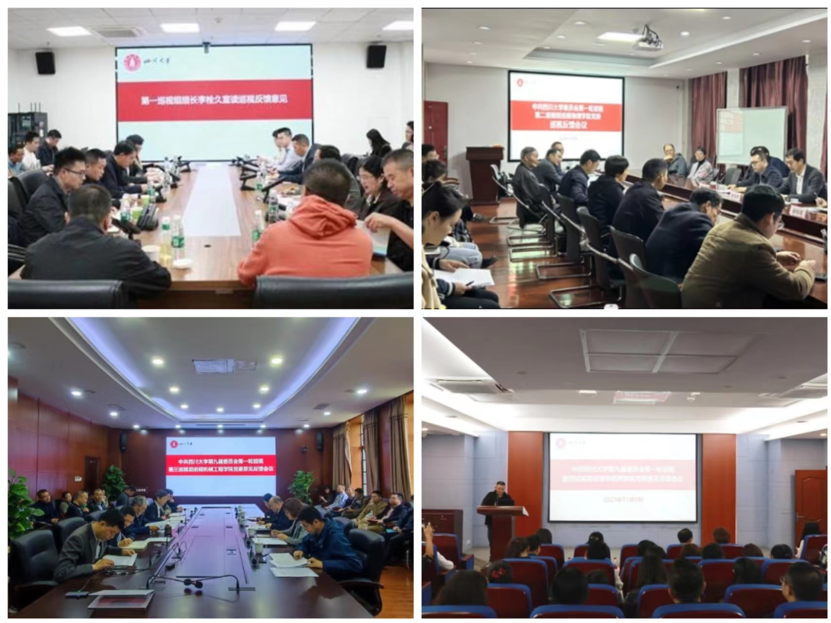 11月9日,4个巡视组分别向文学与新闻学院、物理学院、机械工程学院、华西药学院进行了“一对一”反馈,首先向被巡视单位主要负责人进行了个别反馈,之后向领导班子进行了会议反馈。反馈要求,被巡视单位要提高政治站位,深刻领会巡视整改的重大政治意义;深刻剖析根源,不折不扣抓好巡视整改任务落实;落实整改责任,确保巡视整改落到实处、取得实效。 学院工会主席,两委委员,科室、系(所、中心)负责人,党支部书记、在职及离退休教职工代表、学生代表等列席了班子反馈会议。