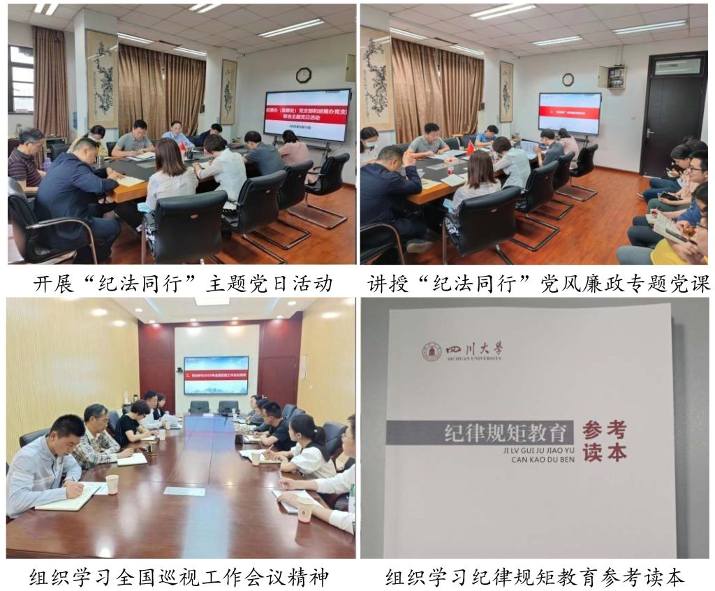 二是多元强化学习教育。组织巡视干部专题学习十九届中央纪委六次全会精神,对全面从严治党总体形势和反腐败斗争新的阶段性特征进行专题研究,对校内巡视工作进行总体部署。专题学习2022年全国巡视工作会议精神,系统谋划学校2022年校内巡视工作,起草学校2022年校内巡视工作要点。联合校纪委办(监察处)党支部开展“纪法同行”主题党日活动,加强警示教育,提升干部纪律规矩意识。党支部书记李玉峰讲授“纪法同行”廉政风险专题党课,引导巡视干部过好“政治关”“信念关”“权利关”“利益关”“亲情关”,切实筑牢拒腐防变的思想防线。观看警示教育片《家道》,教育全体党员引以为戒,警钟长鸣,筑牢反腐倡廉家庭防线。学习《四川省警示教育读本》《9428cn太阳集团古天乐纪律规矩教育参考读本》,进一步明确了纪律“红线”,树牢了规矩意识。创立“思巡论坛”,加强巡视干部对理论政策、业务知识的学习和研讨。