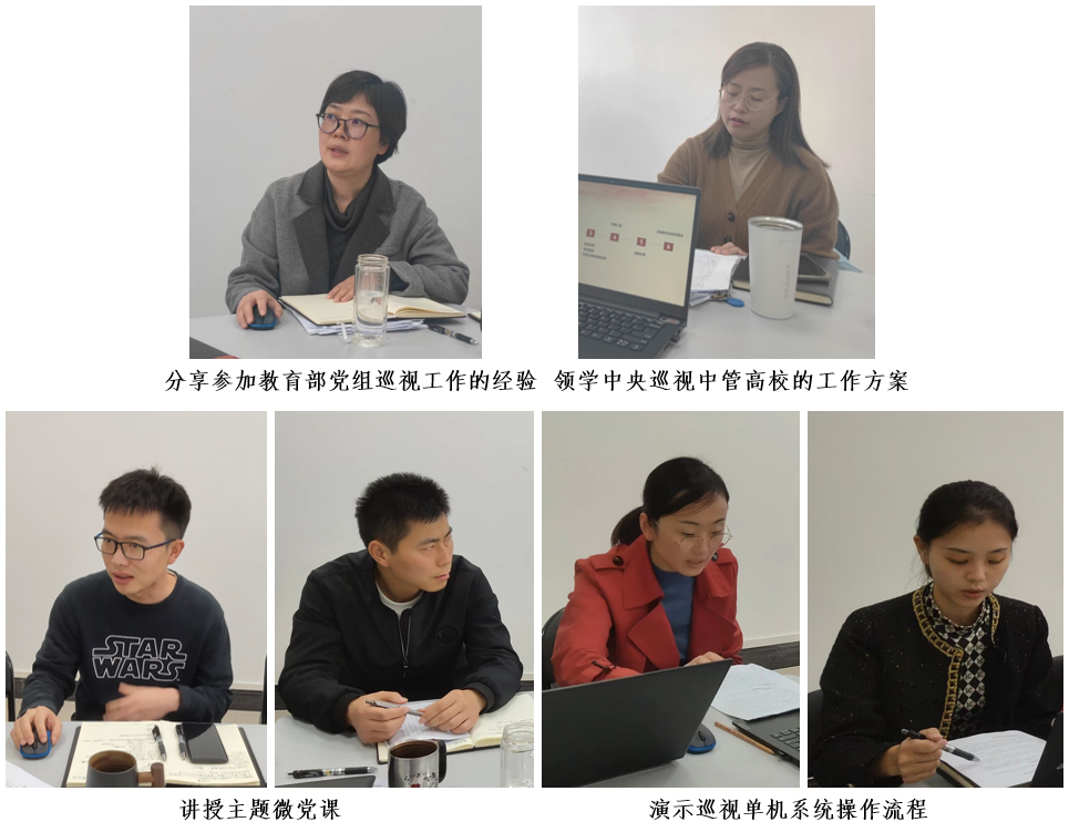 活动把学习贯彻党的二十大精神同具体工作相结合,开展了党支部第四期“思巡论坛”研学活动,王忻怡同志领学了中央巡视中管高校的工作方案,介绍了巡视总体要求、监督重点、主要环节以及对校内巡视工作的启示。王燕同志围绕分工和流程、总体感受、查找问题等三个方面,分享了参加教育部党组巡视工作的经验和体会。戢觅之和李文洋同志分别从巡视组和巡视办角度,演示了巡视单机系统实务操作流程。何郁嵩、许海青同志分别讲授了“新时代巡视工作十年大事记”和“从百年巡视历程看党的成功之道”主题微党课。