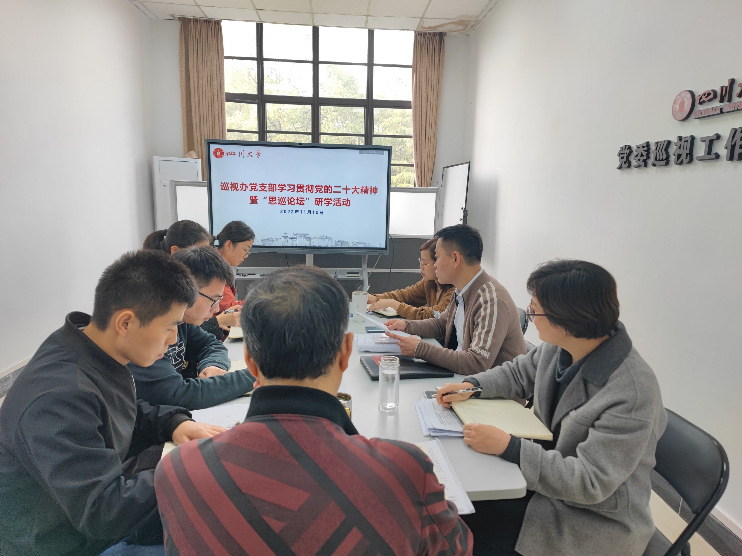 为扎实开展学习贯彻党的二十大精神,准确理解把握党中央的重大决策部署,深入研究谋划校内巡视工作,11月10日,巡视办党支部在望江校区明德楼211会议室开展了学习贯彻党的二十大精神暨“思巡论坛”研学活动。活动由党支部书记李玉峰主持。